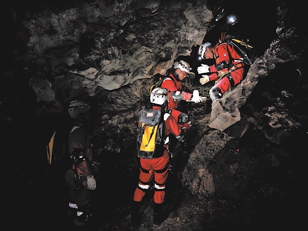 航天员在洞穴中进行物品传递协作训练