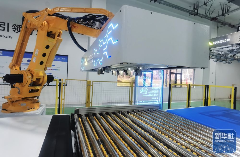 ↑ 1月4日,在四川达州东部经开区麻柳镇的追觅希瑞智能科技(达州)有限公司生产线上,机器人在赶制出口智能床订单。新华社发(邓良奎 摄)