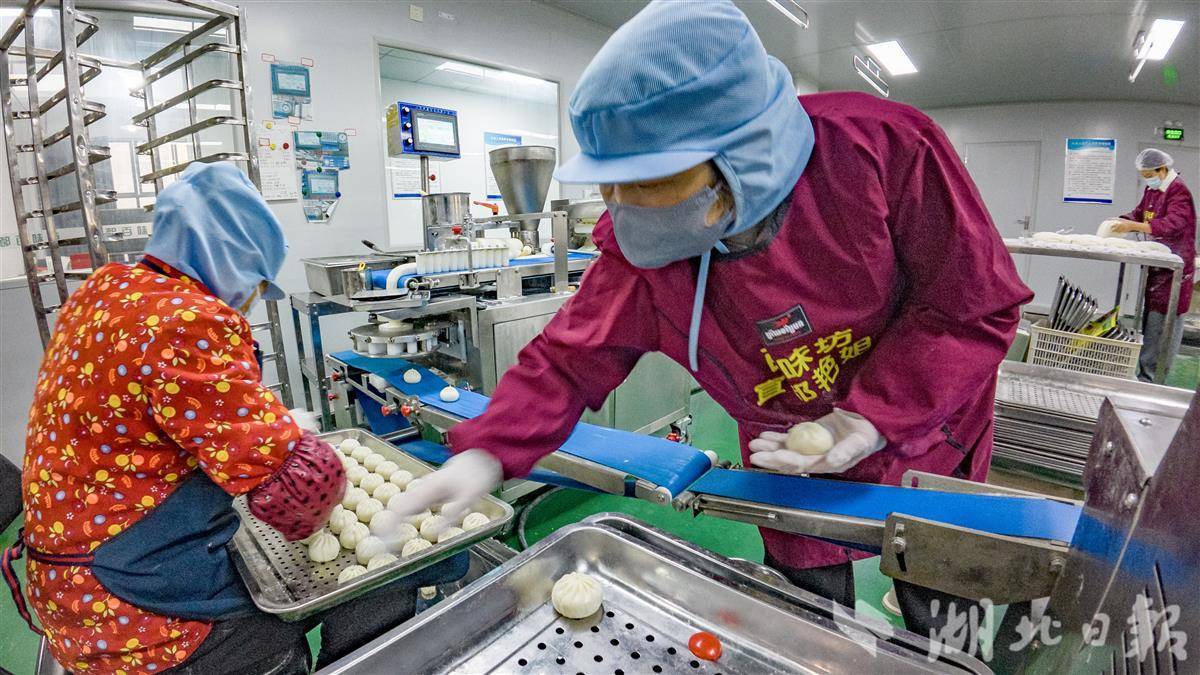 1月4日,宜都百味坊生产车间一片忙碌,工人加班加点赶制订单,该企业启用的宜昌首条老面生胚速冻量化生产线正满负荷运转,每小时产4000个标准包子,为红油包子等面点规模化供应提供支撑,实现产能与品质双突破。该企业自主研发的速冻技术,破解了老面生胚长期保鲜难题。团队精准控温发酵,搭配-40℃急冻技术,15分钟锁鲜,产品冷藏1-2个月复蒸后仍保现做口感。此项技术经两年多攻关、上百次面粉试验,攻克了冷藏发酵稳定性难点。目前该技术已应用于30余种面点,适配红油包子老面基底需求,契合其连锁化、跨区域流通趋势。去年,该企业的包子销售额达610万元。春节临近带动需求攀升,当前订单已排至节后,眼下包子类订单累计20万个,销售额超100万元,企业全员加班赶产保供应。(湖北日报全媒记者 刘曙松 通讯员 朱灿义 黎文来 摄)