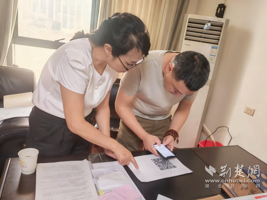 法律援助律师吴和琼到国泰物业管理公司指导企业扫码使用“利企通”小程序。通讯员供图