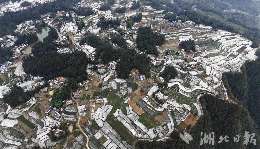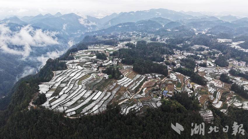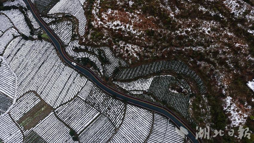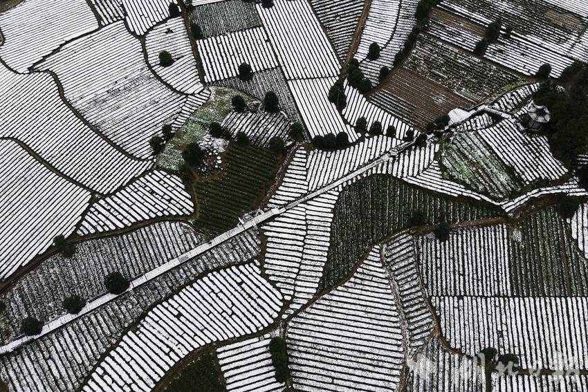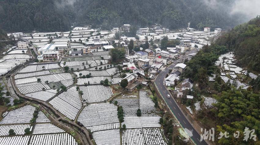 1月1日,咸丰县黄金洞乡大沙坝村和尧坪村一带,雪润茶园兆丰年。