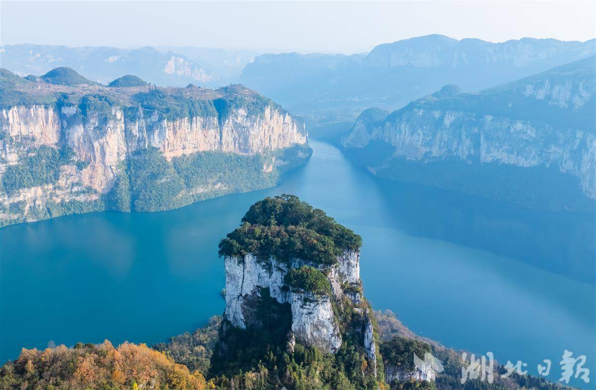 12月1日,贵州省黔西市化屋村,航拍风景如画的乌江源百里画廊景区。(湖北日报全媒记者 薛婷 摄)