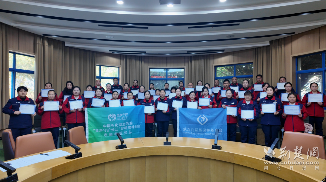 在推动长江经济带发展座谈会十周年之际,中国石化湖北石油分公司联合武汉白鱀豚保护基金会开展“我和江豚有个约会——长江江豚宣讲员”培训活动,并成立“清净守护长江”珍稀物种保护志愿者服务队,首批40余名志愿者全部来自加能站,回到工作岗位后,他们将充分发挥加能站的窗口作用,积极向消费者宣讲长江江豚保护知识。