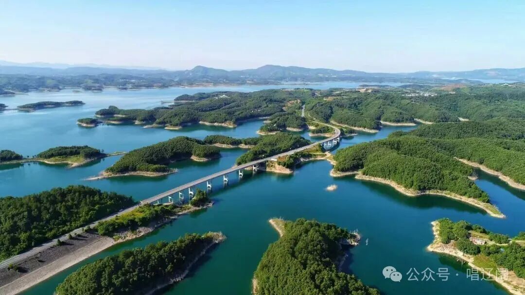 鄂豫交界处的丹江口水库,天空明净如洗,巍峨的大坝,湛蓝的湖水,构成一幅美丽画卷。