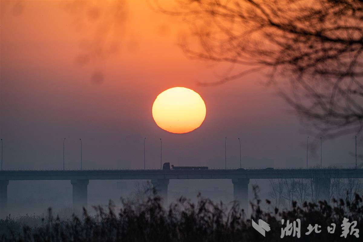 1月7日日出时分,在武汉东西湖府河湿地,万千候鸟飞抵天鹅湖觅食休息。(湖北日报全媒记者 任勇 摄)