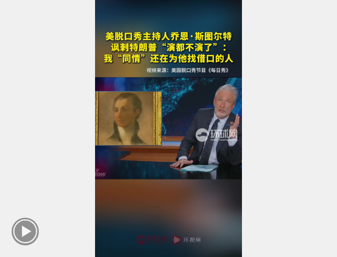 【环球网报道】据美国《综艺》杂志报道,在当地时间1月5日播出的美国脱口秀节目《每日秀》上,主持人乔恩·斯图尔特就美国对委内瑞拉军事行动讽刺美国总统特朗普“演都不演了”。他讽刺说,我同情那些还在为特朗普找理由的“马屁精”,“他们还没收到通知,我们不再需要用所谓‘伟大国家理想’来包装我们的鲁莽行为。”