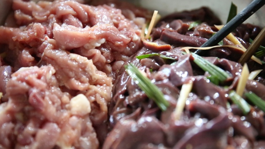 嫩若凝脂的猪肝、滑嫩温润的猪血