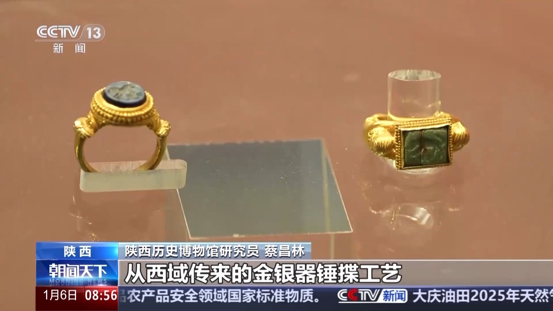 陕西历史博物馆研究员 蔡昌林:经济的发展,带来了手工艺技术的升级,比如瓷器和丝绸的规模化生产。从西域传来的金银器锤揲工艺、玻璃制造工艺,也为后来的发展奠定了基础。