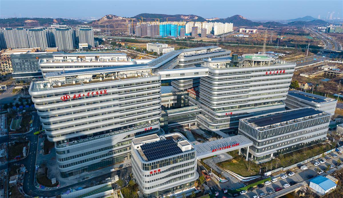 光谷人民医院(武汉大学中南医院光谷院区)项目现场,主体建筑已完成外立面施工,正在进行内部装修和设备安装。