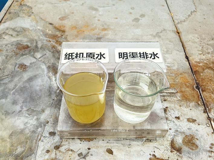 山鹰华中纸业废水处理前后对比。