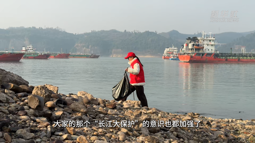 江边巡护的“长江哨兵”志愿服务队队员对垃圾“锱铢必较”,用双手守护一江清流。