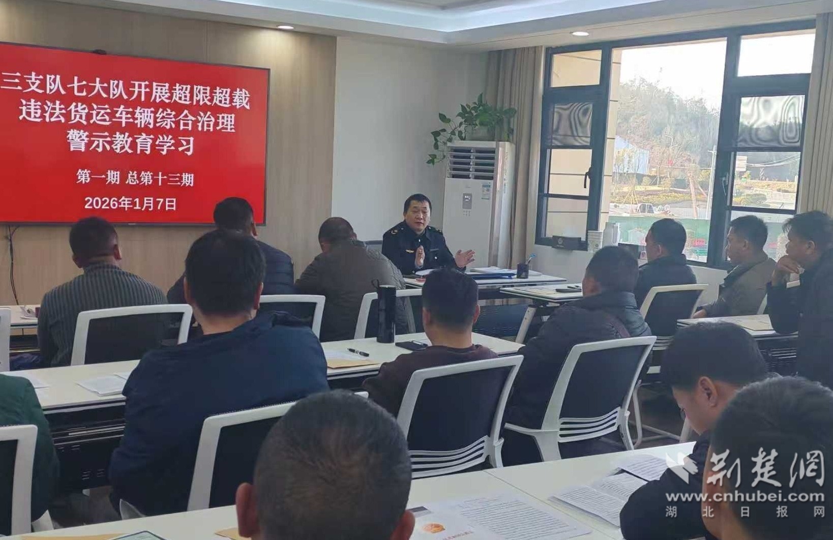 没有照本宣科的讲话,也没有笼统模糊的说理。1月7日下午,在湖北省交通运输综合行政执法总队高速公路路政执法三支队七大队,一堂特殊的警示教育课正在进行。18名近期有称重超限记录的驾驶员坐在一起,成为这堂“以案说法”课的“主角”。