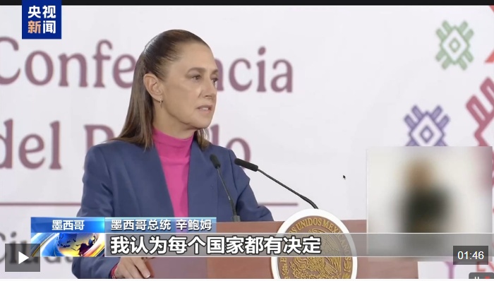 墨西哥总统 辛鲍姆:我认为每个国家都有决定如何处置其自然资源的权利。我不认为一个国家可以凌驾在另一个国家之上,无论后者有多小,或者正面临哪些棘手的问题,每个国家都是主权国家,如何处置其自然资源也是主权的一部分。