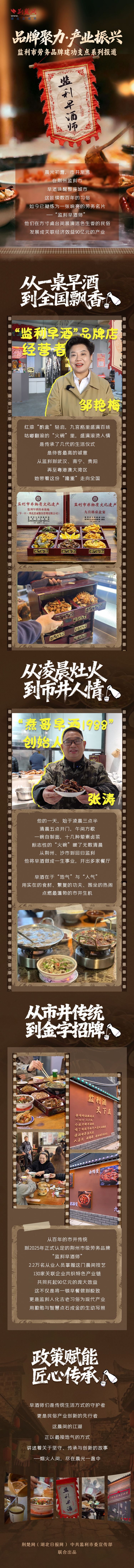 这延续数百年的晨间习俗,如今已凝练成一个充满生命力的劳务品牌——“监利早酒师”。品牌的树立,让原本“散作满天星”的早酒师傅们汇聚成“一团火”,2.2万名从业人员掌握着这份独特的晨间技艺,130家关联企业共同壮大着这条特色产业链,催生出高达90亿元的经济效益。