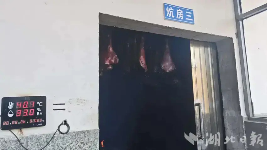 生产流程上,车间科学划分为腌制区、清洗区、烘烤区等功能区域,实现清洁化、标准化操作。其中,烘烤环节尤为关键:企业不仅在烘烤房内配备温湿度监测设备,依据不同阶段精准调控工艺参数,还坚持选用青冈木作为燃料。青冈木火大烟小的特性,使腊肉在慢熏中逐渐形成红亮色泽与独特风味,实现了“色、香、味”的有机统一。