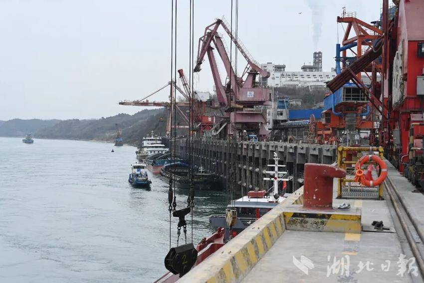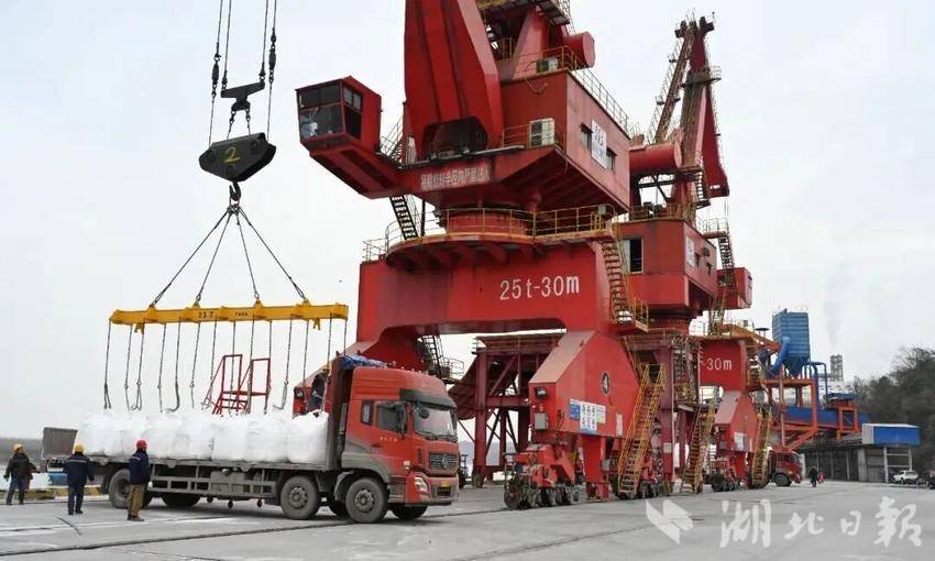 湖北日报客户端讯(通讯员张子翰 杨亚兵)冬日的长江南岸,松滋港车阳河码头作业正忙。红色龙门吊巍然耸立,集装箱被稳稳吊装至货轮,散货堆场上传送带高速运转。