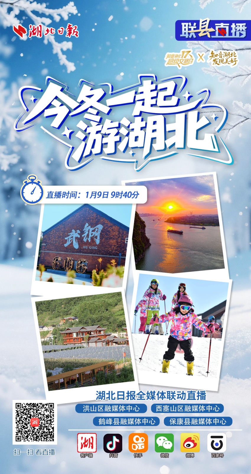 1月9日9时40分,湖北日报将开展《今冬一起游湖北》联“县”直播,带大家解锁四站惊喜之旅。