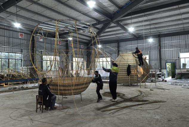 这场试水,让节节升竹器厂一炮而红。从最初的三名工匠,到如今的30多名工匠,再到专门组建的直播队伍,订单如雪花般飞来。“竹编景观”火了,雷竹小镇的生态招牌也越擦越亮。样板菜园里种了20多种蔬菜,葱、姜、大蒜、香菜一应俱全。笠帽亭下蔬菜鲜嫩,竹炭炉里火锅飘香,黄泥灶上的锅巴酥脆可口。