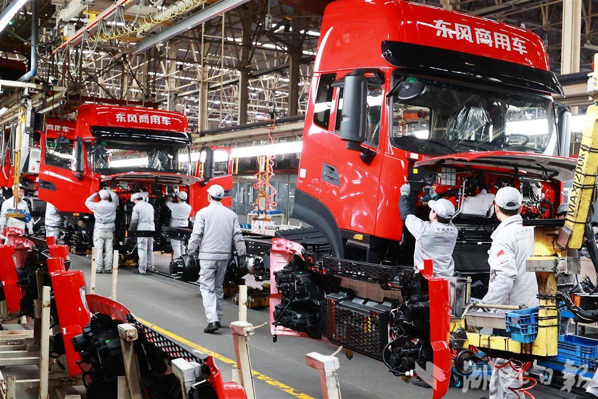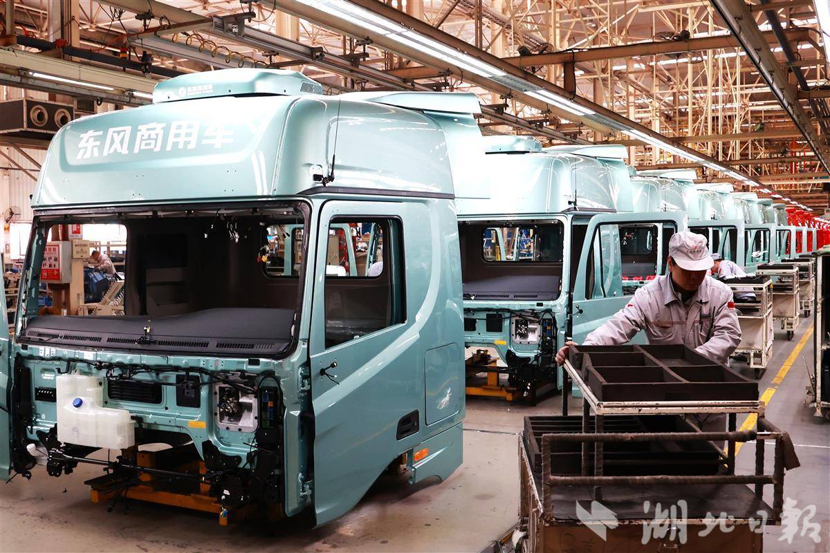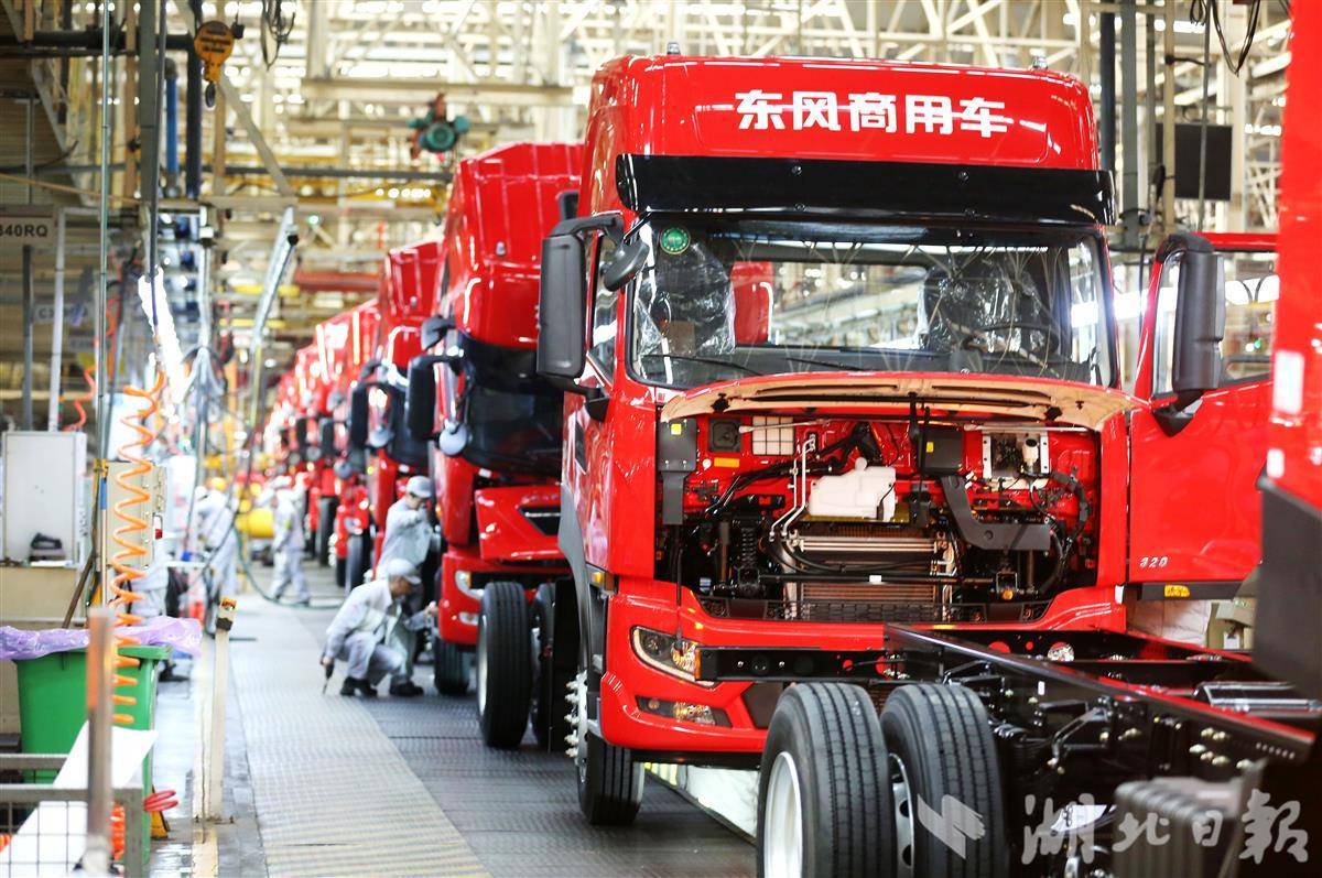 1月7日,在十堰的东风商用车整车工厂绿色车间里,产线工人开足马忙生产,一台台崭新的车辆有序下线。