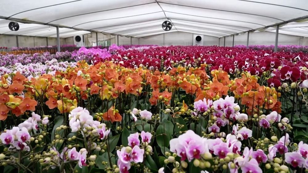 随着马年新春的临近,杭州市的各类年宵花迎来了销售旺季。余杭区仁和街道一家花卉基地共培育100余种蝴蝶兰,年产量可达160万株。