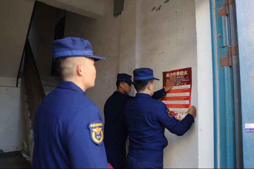 在进行消防宣传的同时,消防救援人员对住宅小区的消防设施运行、消防车通道畅通、电动自行车停放充电等隐患进行了逐一排查,并在小区楼道和集中停放电动自行车的场所张贴冬季防火及电动自行车宣传海报。