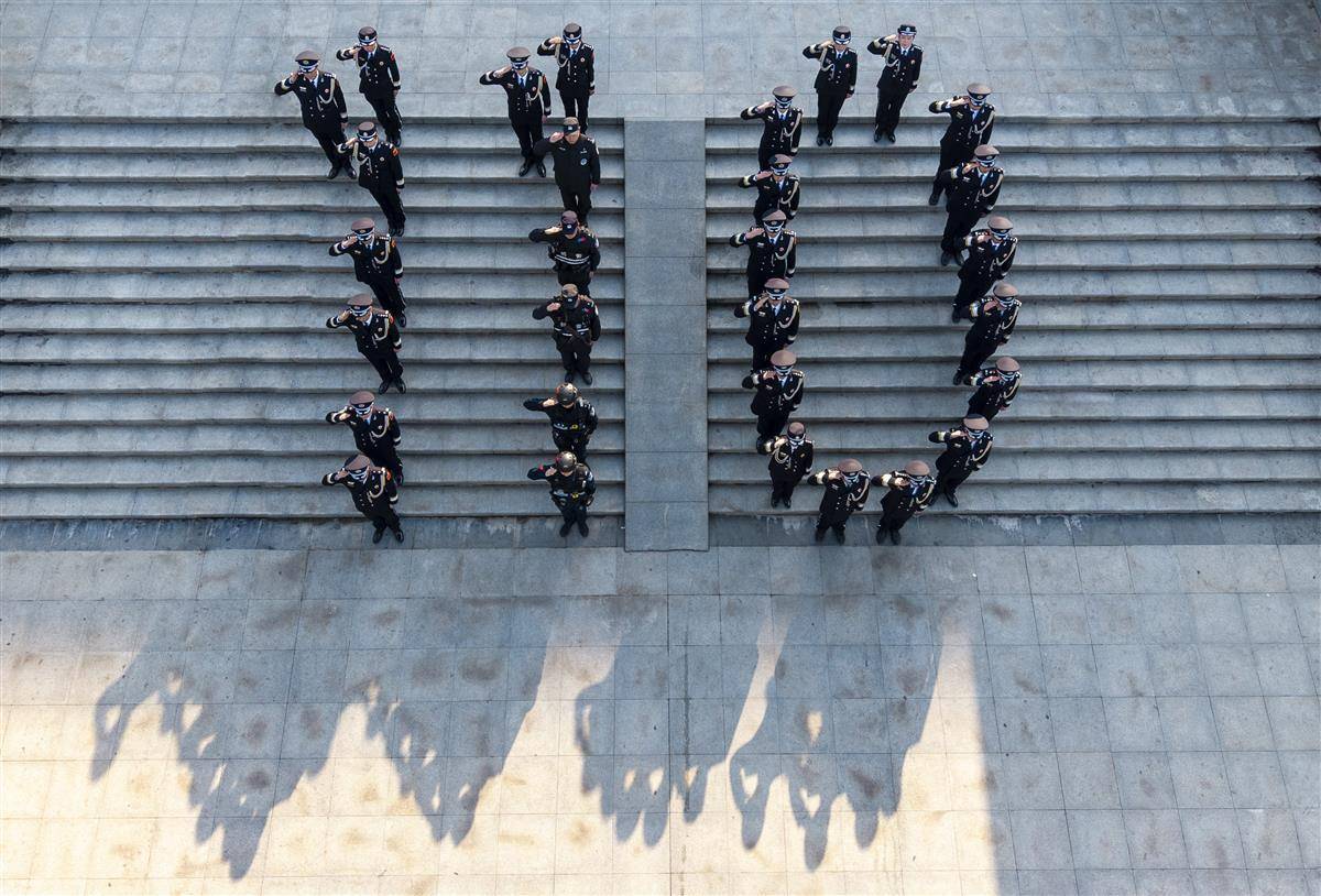 1月8日,武昌火车站站前广场,民警们组成110字样,迎接中国人民警察节到来。