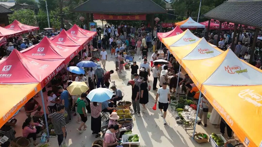 2025年5月,首场“八角赶大集”在文昌阁下鸣锣开市。最初只是试探——组织了周边几十户村民,摆出自家的蔬菜、禽蛋、干货。未曾想,一炮而红。城里的市民开车来,路远的老人坐公交车来,就为了那一口“孩时的味道”,那一份久违的“烟火乡愁”。