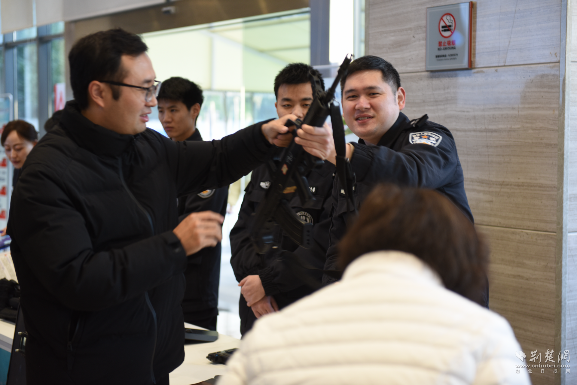 荆楚网(湖北日报网)讯(记者 白云 通讯员 岸公暄)“这个反诈台历真实用”“警用步枪原来这么沉”“有了这个‘回家的钥匙’,再也不怕老人迷路了……”1月8日上午9时30分,冬日暖阳洒满江岸区政务服务大厅,一场集“便民服务、安全科普、装备展示”于一体的“警民同心·平安同行”主题警营开放活动温馨启幕。