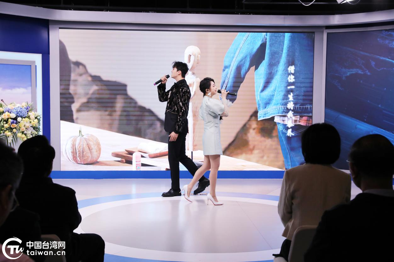 发布会现场,来自中国台湾地区的青年歌手魏晖倪与中国铁路文工团青年歌唱演员赵学飞对唱《青山青》主题曲。(中国台湾网记者 陈佳慧 摄)