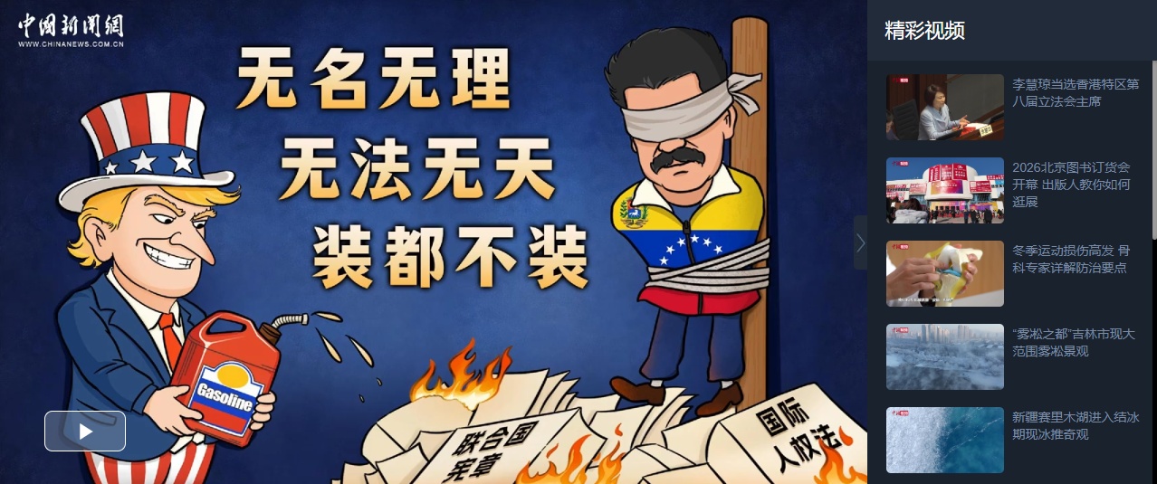 美国派兵强行控制委内瑞拉总统马杜罗夫妇并移送出境,更扬言美国将“管理”委内瑞拉并进行“整顿”。难道仗着自己是一个大国,就可以霸道横行,以武力肆意入侵他国?泼向《联合国宪章》和《国际人权法》的,不是汽油,而是强权政治的傲慢与野蛮。无名无理,无法无天,这样的霸权行径,必将遭到历史的谴责与唾弃!