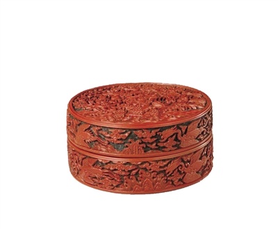 剔红松竹梅岁寒三友纹圆盒(故宫博物院藏)
