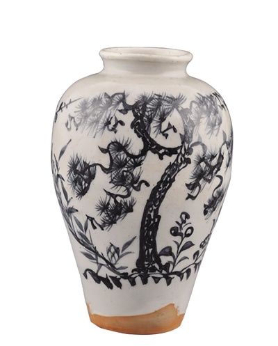 江西省博物馆藏元代青花松竹梅纹梅瓶,以简朴的民窑之身,承载着不凡的文心。青花呈灰蓝色,釉面温润,瓶身所绘“岁寒三友”图,疏密有致。其中松枝遒劲,似君子风骨;竹叶婆娑,含虚怀气节;梅影横斜,透冰雪精神,是元代青花中蕴含深厚文化气韵的精妙之作。