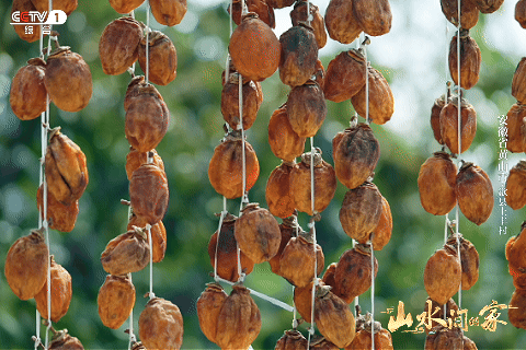 除了漫山遍野的金丝皇菊,上丰村房前屋后也种植了绵延成片的柿子树。当地的灯笼柿已有400年历史,目前,全村灯笼柿种植面积720亩,年产量约550吨。鲜柿市价约每斤5元,而经古法加工制成柿饼后,价格可提升至每斤30~40元,点“柿”成金,助力农户增收。“姬公尖柿饼”被列为歙县非物质文化遗产,从给灯笼柿刮皮、串绳、晾晒到捂霜,每一道制作工序都承载着对自然的敬畏与对传统的坚守。