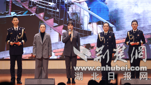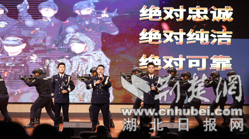 “砥砺奋进 —— 建功支点有我” 篇章则凸显荆门公安护航经济发展、守护社会安全的硬核实力。荆门市公安局高新区・掇刀区分局以主题朗诵《以奔跑姿态 护航高质量发展》,讲述分局在优化营商环境中的实践:从 “重大涉企案件当场立案” 先行先试,到打造 “警企党建联盟”,再到全力侦破大案要案,彰显公安队伍为地方经济高质量发展保驾护航的决心;荆门市反恐怖和特警支队队员以歌曲《渴望光荣》搭配整齐划一的战术动作震撼登场,“拉得出、冲得上、打得赢” 的口号响彻现场,展现特警队伍维护社会稳定的过硬本领,将活动气氛推向高潮。