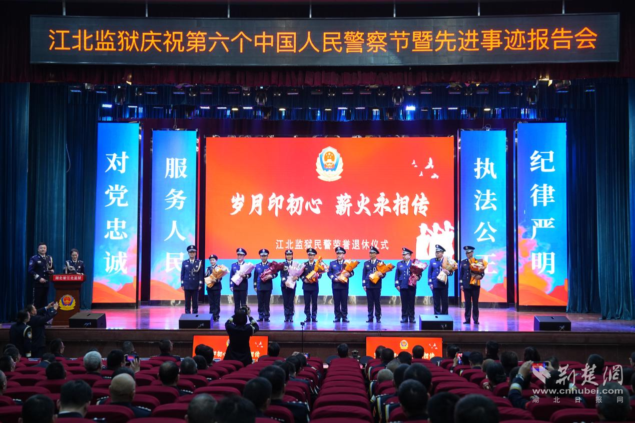 荆楚网(湖北日报网)讯(通讯员 喻三娇、张琳、向阳雯宇、赵青松、王德松)警旗猎猎迎风展,警徽熠熠映初心。1月9日,江北监狱举办庆祝第六个中国人民警察节暨先进事迹报告会。活动融庄严升旗、榜样故事、温情荣休和红色文艺于一体,充分展现江北监狱民警忠诚履职、担当奉献、薪火相传的铁军风采。