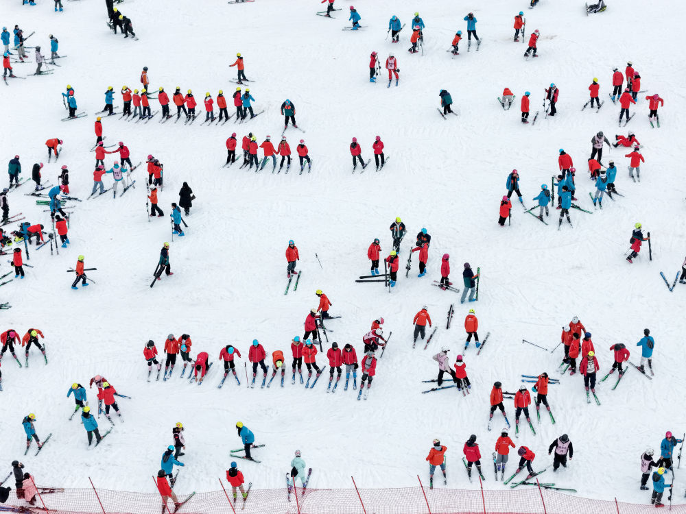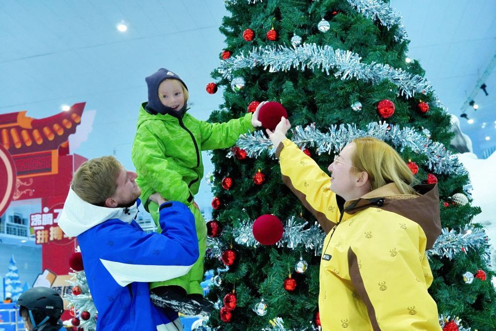 滑雪爱好者们在深圳·前海冰雪世界参加迎新年活动↑