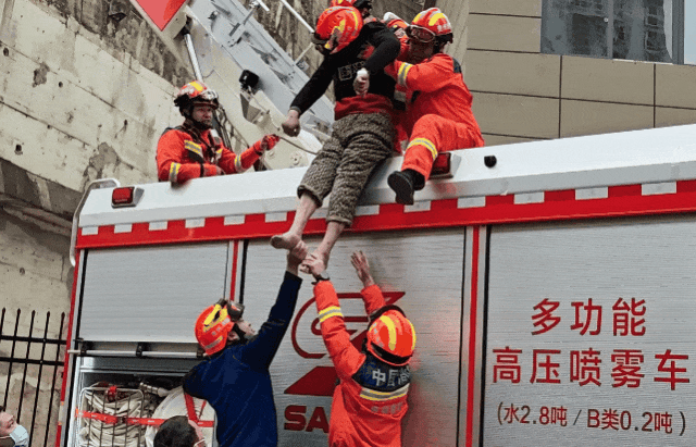 护送其一步步转移至地面