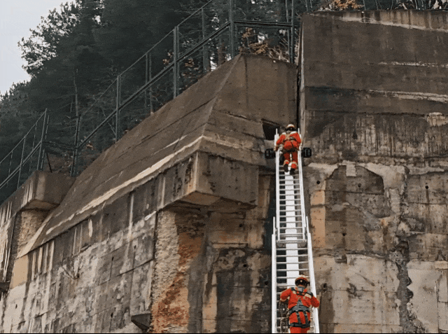 沿梯缓缓向上攀爬