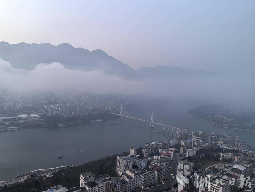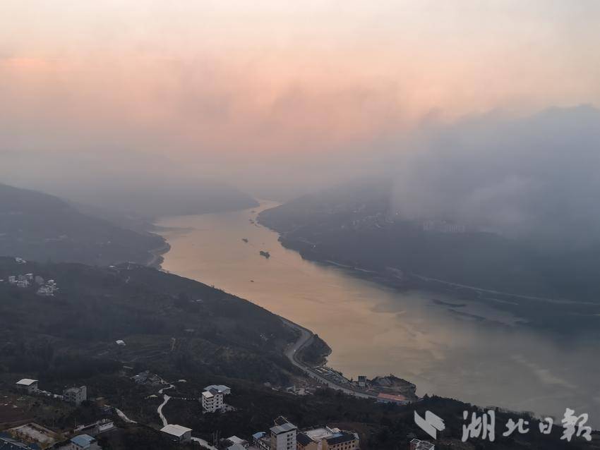 湖北日报客户端讯(通讯员陈功龙)冬日清晨,湖北省恩施州巴东县迎来绝美晨曦。朝晖穿透薄雾洒向长江,山城于朦胧雾霭中苏醒。