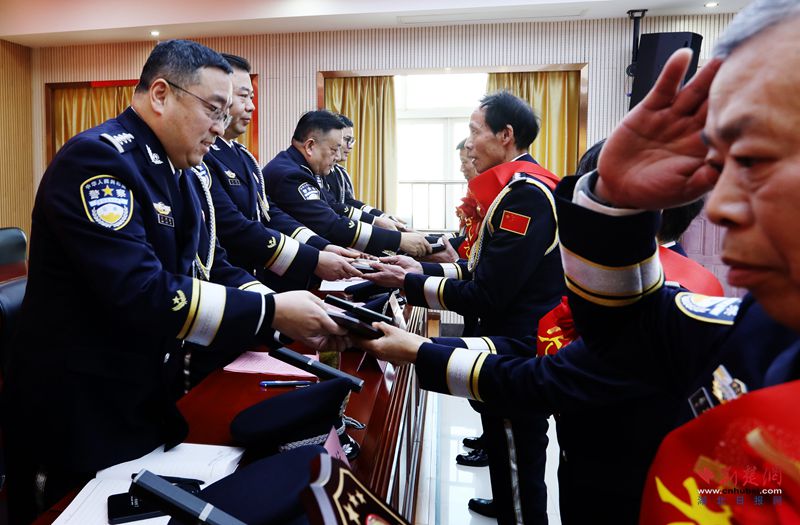 传承是此次活动最动人的底色。活动现场,荣休纪念章颁发与新警授衔环节相互呼应,勾勒出公安事业薪火相传的清晰脉络。局党委班子成员为5名2025年退休民警代表颁发荣休纪念章,感谢他们数十年如一日扎根公安一线,用青春与热血守护黄梅平安,为公安事业发展奠定坚实基础。15名新招录民警佩戴上崭新的警衔,也正式接过守护平安的接力棒,眼神中的坚定与向往,彰显着公安队伍的新生活力与希望。