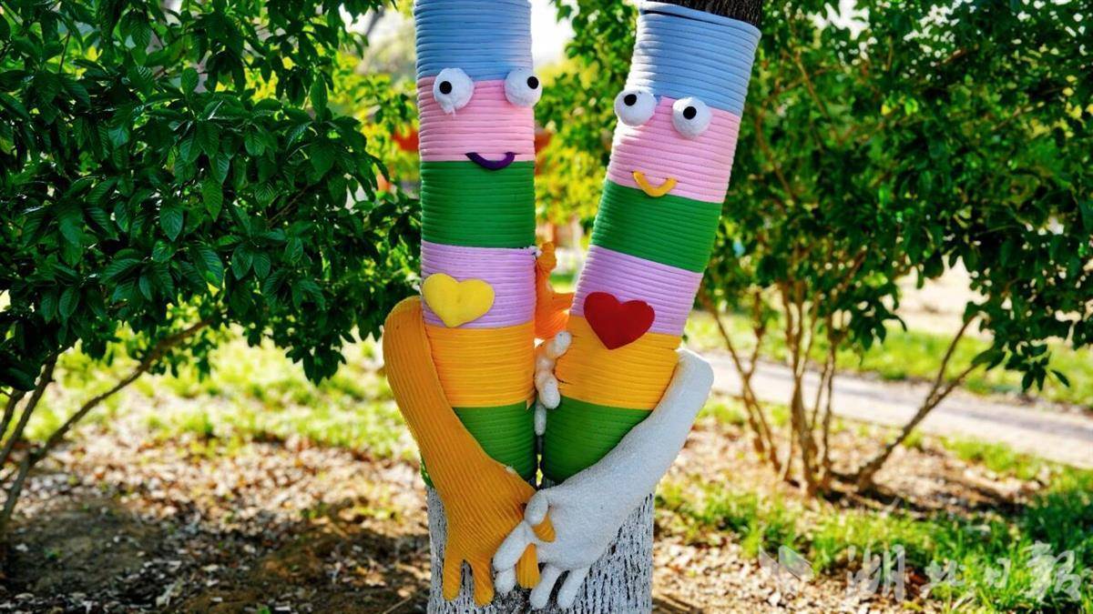 身着彩色毛衣的香樟。(人民广场 艺术乐园)