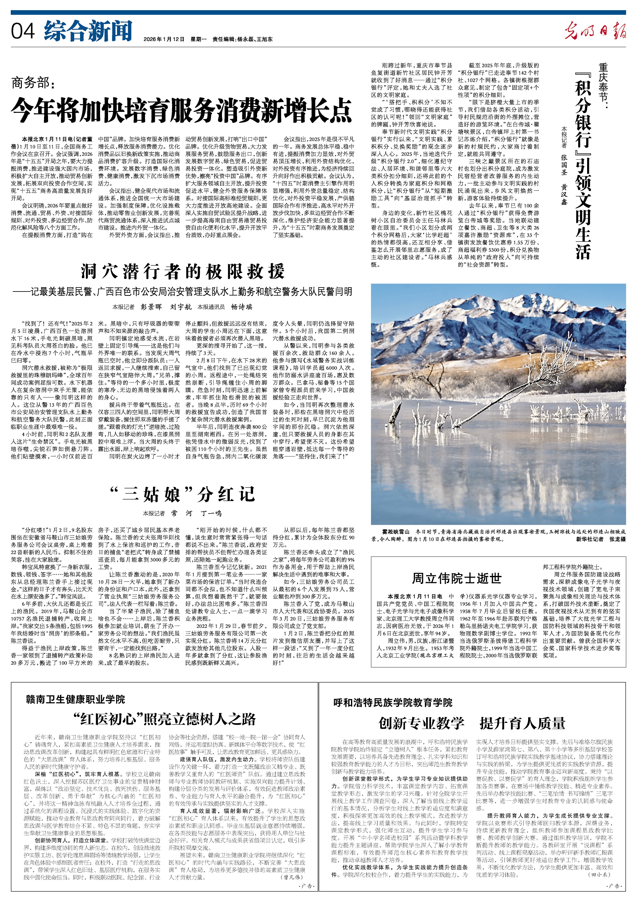 援兵终于带着气瓶抵达。在仅容三四人的空间里,闫明帮大周穿戴装备,握住那双冻僵的手搓了搓。“跟着我的灯光!”逆暗流、过险弯,几人如移动的珍珠,在漆黑洞腔中艰难上浮。当大周的头终于露出水面,岸上响起欢呼。