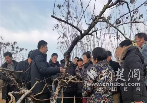 荆楚网(湖北日报网)讯(通讯员 王久慈 张稳平)近日,京山市雁门口镇2026年首场黄桃果树管理技术培训会在长岗村举行。来自全镇辖区各村组的42户种植大户齐聚一堂,学习黄桃春季施肥、施药、整枝等关键技术。