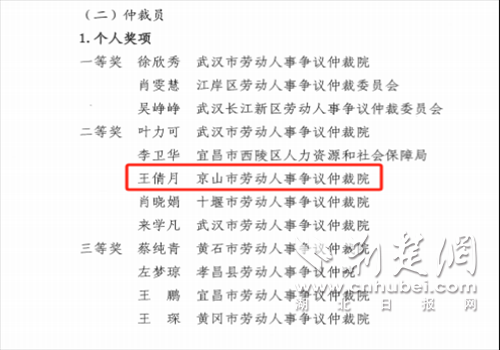 荆楚网(湖北日报网)讯(通讯员 熊成龙)近日,湖北省总工会发文公布2025年“湖北工匠杯”技能大赛——全省职工职业技能大赛个人及团队奖项,京山市劳动人事争议仲裁院王倩月荣获全省首届劳动人事争议调解员和仲裁员职业技能大赛仲裁员赛项个人二等奖。