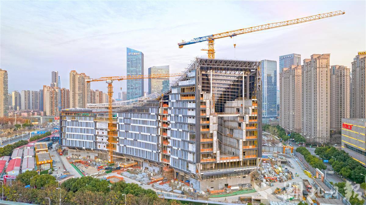 1月10日,位于武汉市王家墩中央商务区的武汉图书馆新馆项目外立面正进入“亮装”冲刺阶段,铝镁锰金属屋面施工稳步推进,预计2026年底正式开放迎客。