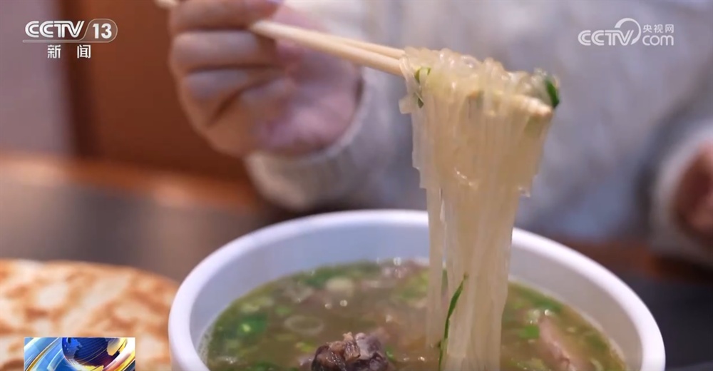 在青海,要说最“硬核”的早餐,牦牛大骨汤绝对当之无愧。大家看记者手上的这碗牦牛大骨汤,汤色清亮、牦牛肉酥烂、粉条吸饱了汤汁,爽滑筋道。早上来上这么一碗,从舌尖暖到胃里,浑身都充满温暖和力量。