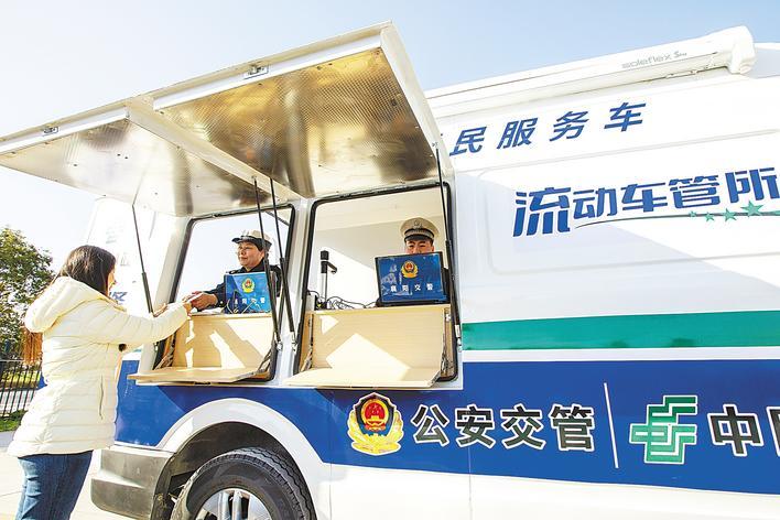 1月11日,襄阳市民在东津新区家门口的警邮服务流动车管所便捷办结遗失补证业务。据悉,该服务由市交管部门联合襄阳邮政分公司共同推出,集成期满换证、遗失补证、损毁补证及体检等多项车驾管功能,精准打通业务办理“最后一公里”,把便捷车管服务送到群众家门口。(视界网 李旭晖 摄)