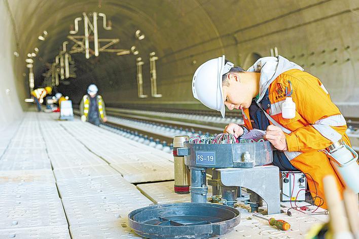 襄阳电务段工作人员检查验收沿线设备。 (湖北日报通讯员 邵泽军 摄)