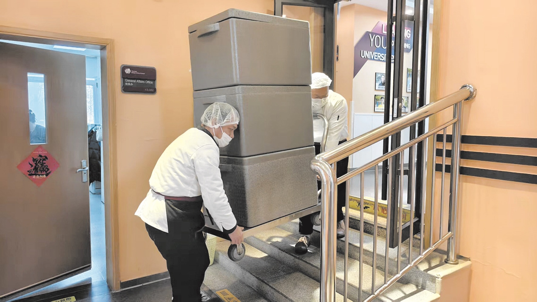 元旦假期结束,武汉英中小学部的师生们发现,教学楼连廊处的六级台阶上,稳稳架起了两道可移动坡道,轮椅、餐车从此畅通无阻。