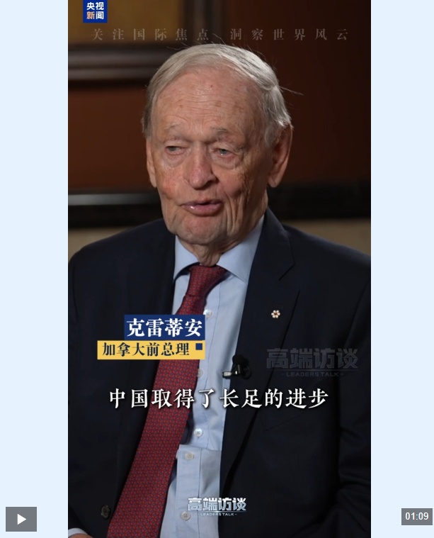 加拿大总理卡尼将于1月14日至17日对中国进行正式访问。近日,加拿大前总理克雷蒂安在接受总台《高端访谈》采访时表示,他曾多次到访中国,是中国高速、稳步发展的见证者。